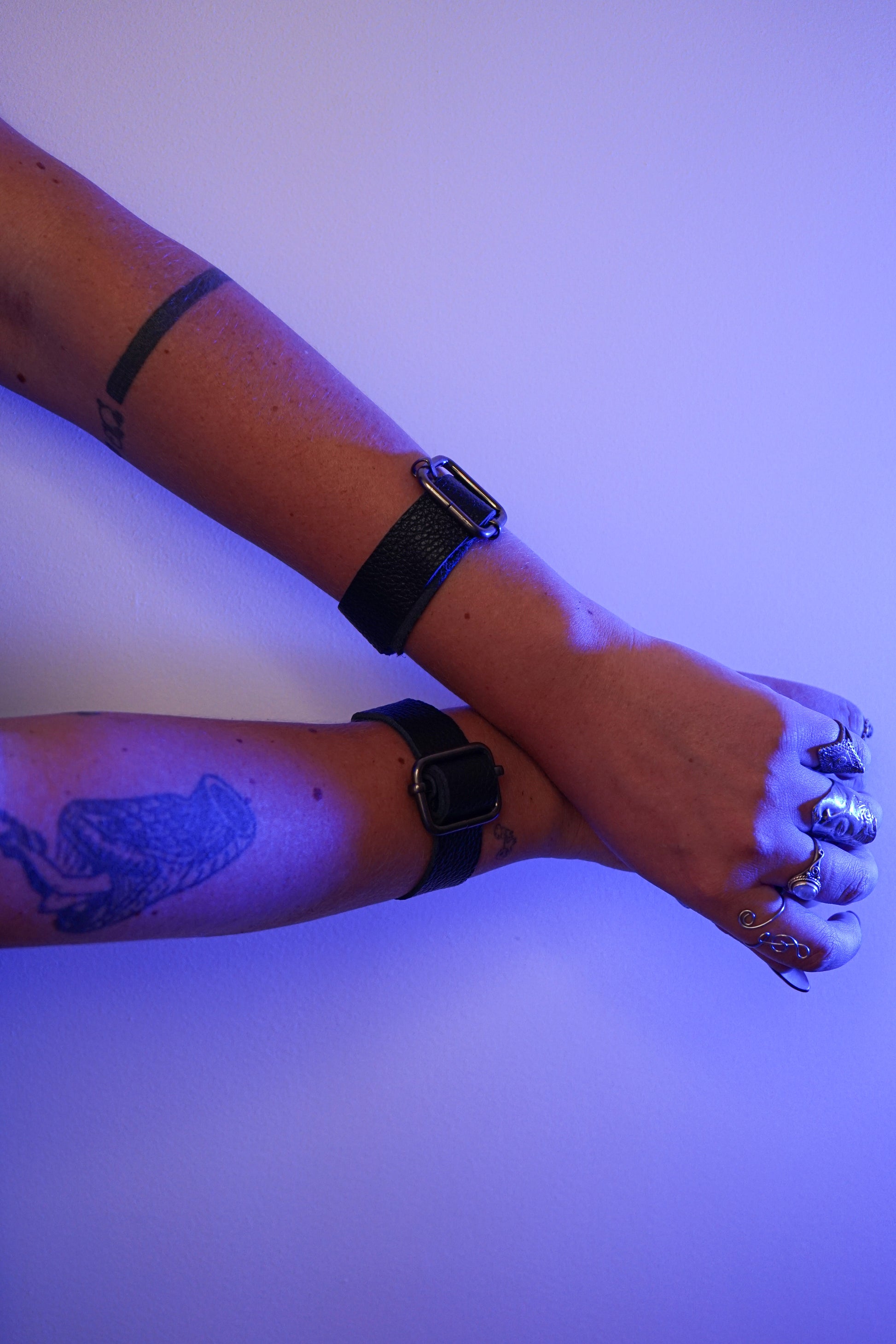 Voici une proposition de fiche produit poétique, sensuelle et complice pour les menottes en cuir de récupération, créées par Lune :