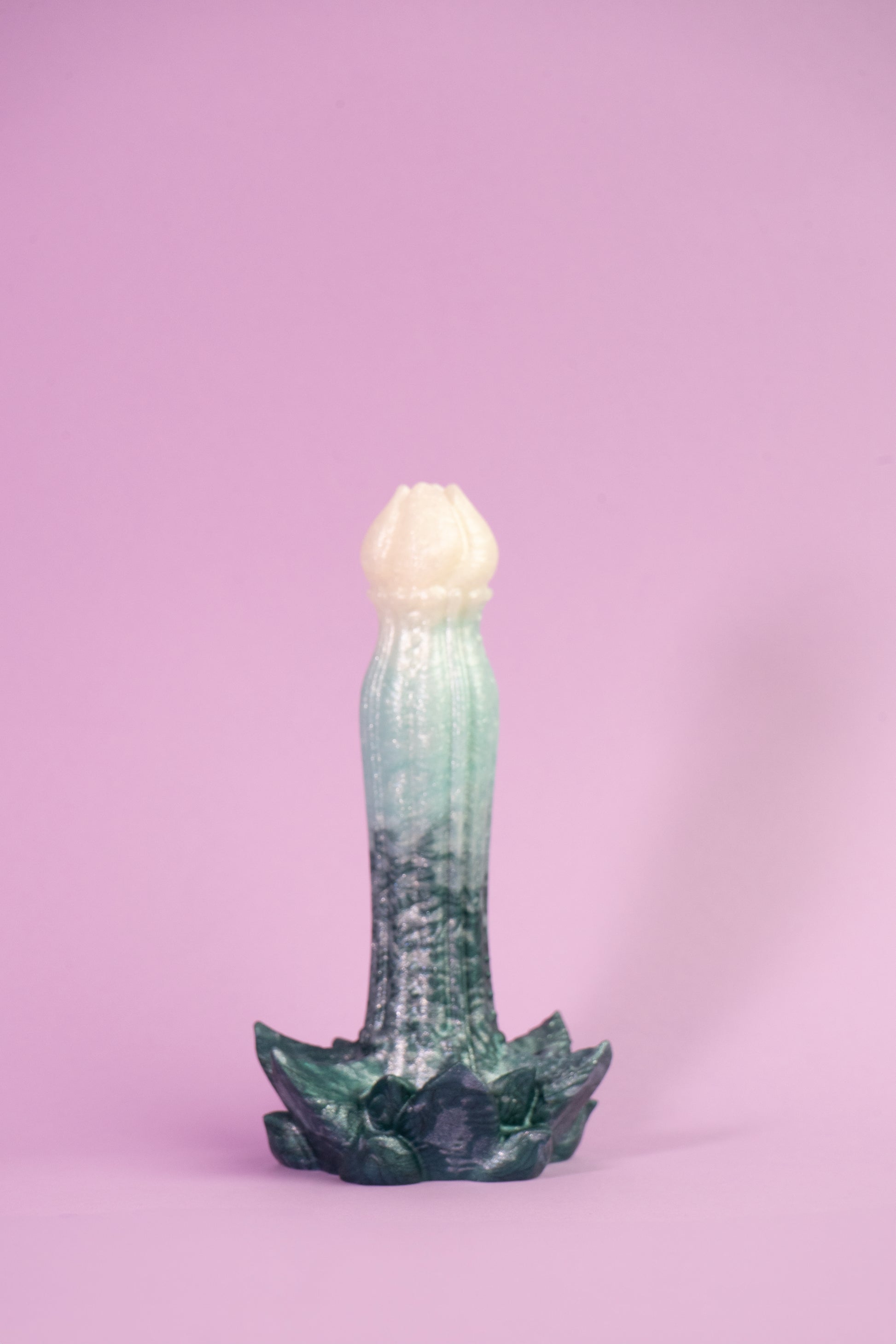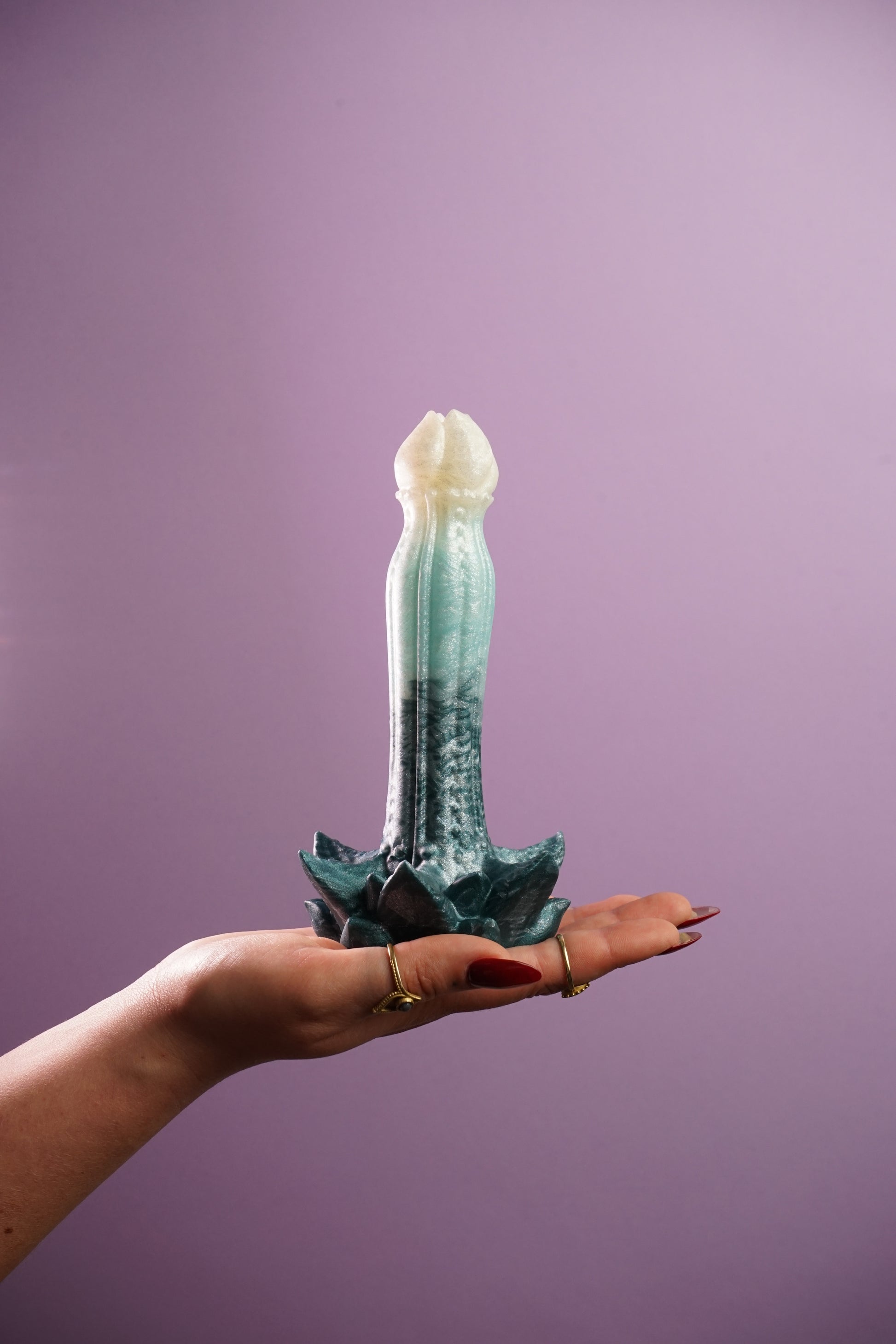 Inspiré d’une fleur d’eau enchantée, ce sextoy sculptural invite à plonger dans un monde de sensations humides, végétales et voluptueuses.